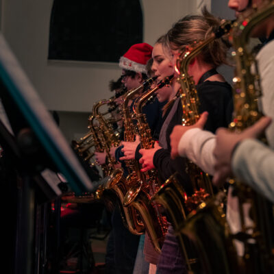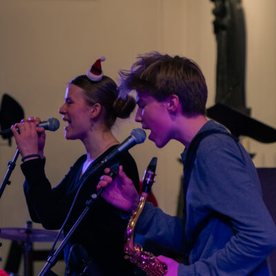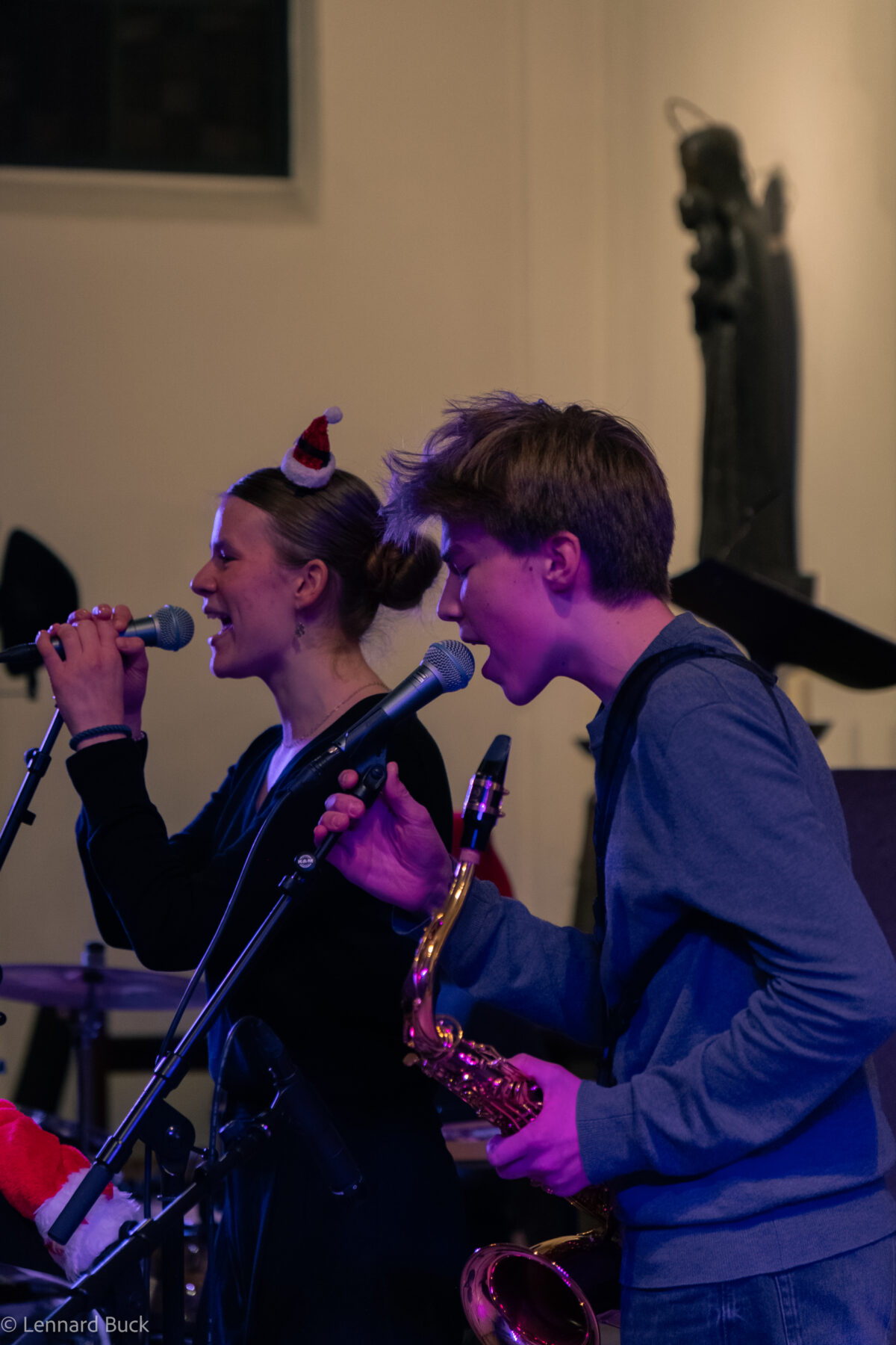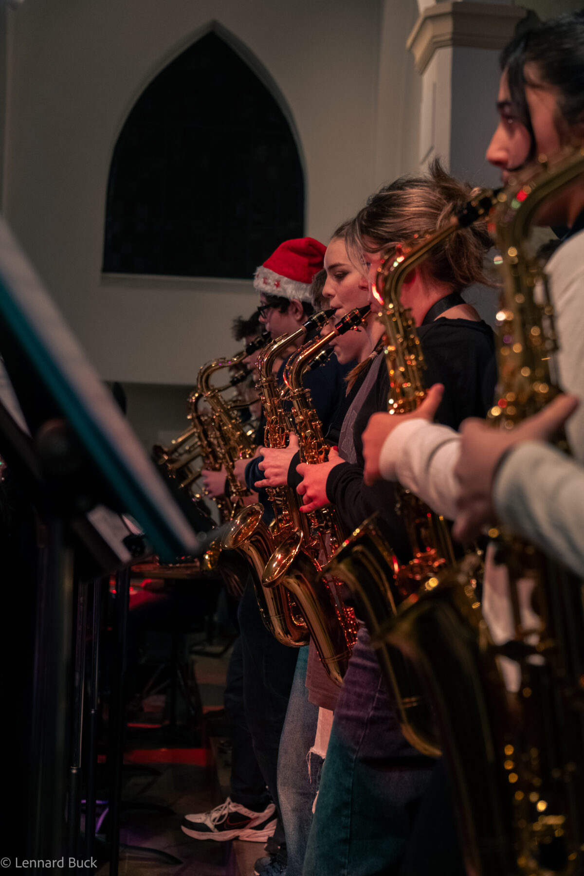 Den feierlichen Auftakt gestaltete die Bläserklasse 5b unter der Leitung von Herrn Netsch. Im Anschluss präsentierten weitere Bläserklassen sowie die schulischen Bands ein vielfältiges Repertoire, das von modernen Arrangements bis hin zu beliebten Weihnachtsklassikern wie „Jingle Bells“ und „Rudolph the Red-Nosed Reindeer“ reichte.