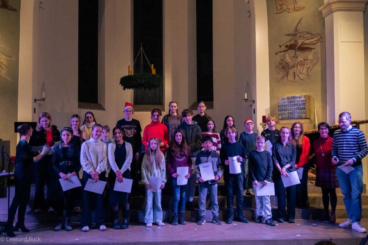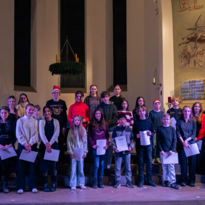 Bereichert wurde das Konzert durch Auftritte der Preisträgerinnen und Preisträger des diesjährigen Instrumentalwettbewerbs. Mit Beiträgen aus ganz unterschiedlichen musikalischen Stilrichtungen, von Klavierstücken über Tarantellas auf der Blockflöte bis hin zu gesungenen Balladen, zeigten sie eindrucksvoll ihr Können. Im Rahmen des Konzerts erhielten sie zudem eine würdige Anerkennung ihrer Leistungen durch die Musikfachgruppe und Herrn Zeidler.