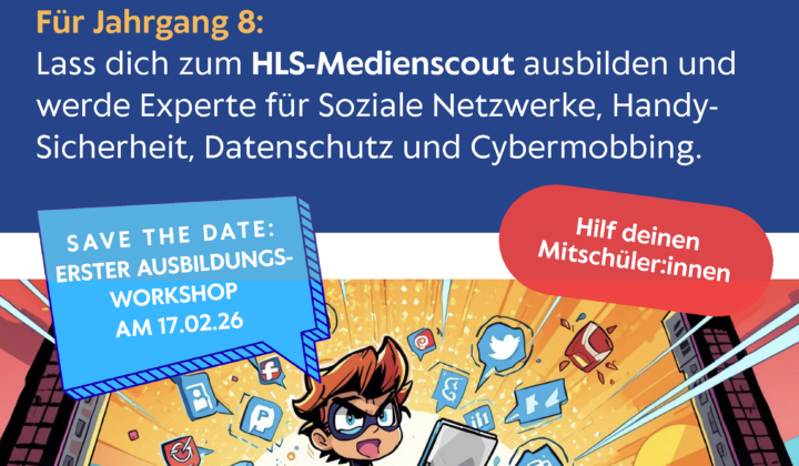 Die Helene-Lange-Schule nimmt im Schuljahr 2025/2026 am Projekt Medienscouts teil, das vom Niedersächsischen Landesinstitut für schulische Qualitätsentwicklung (NLQ) und der Niedersächsischen Landesmedienanstalt (NLM) in Kooperation mit dem Niedersächsischen Kultusministerium angeboten . . .