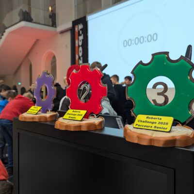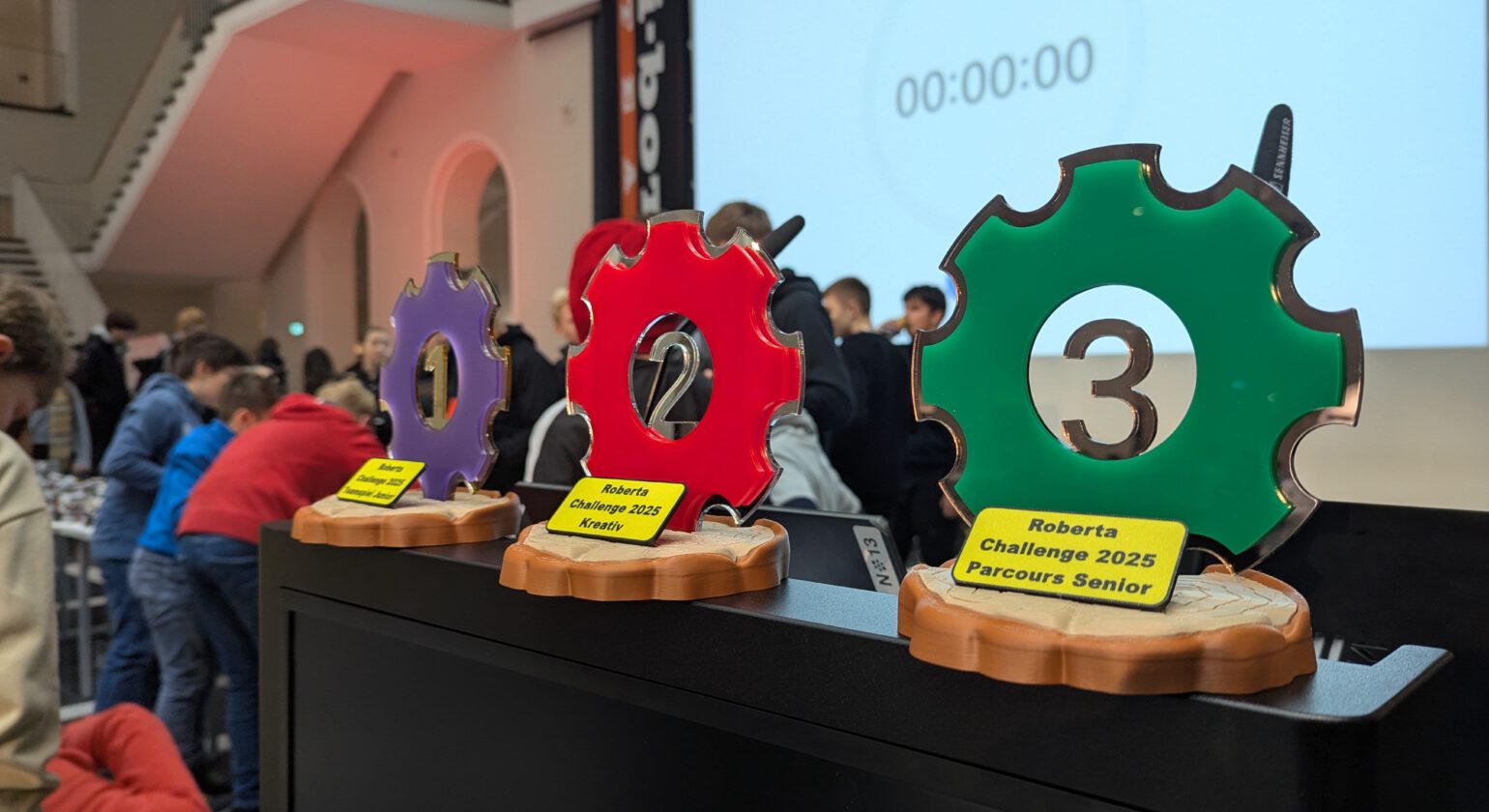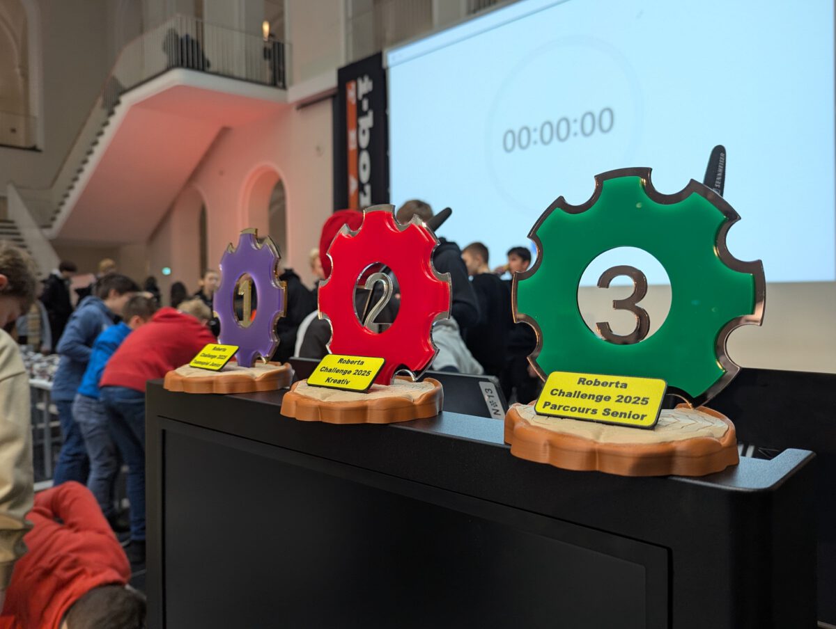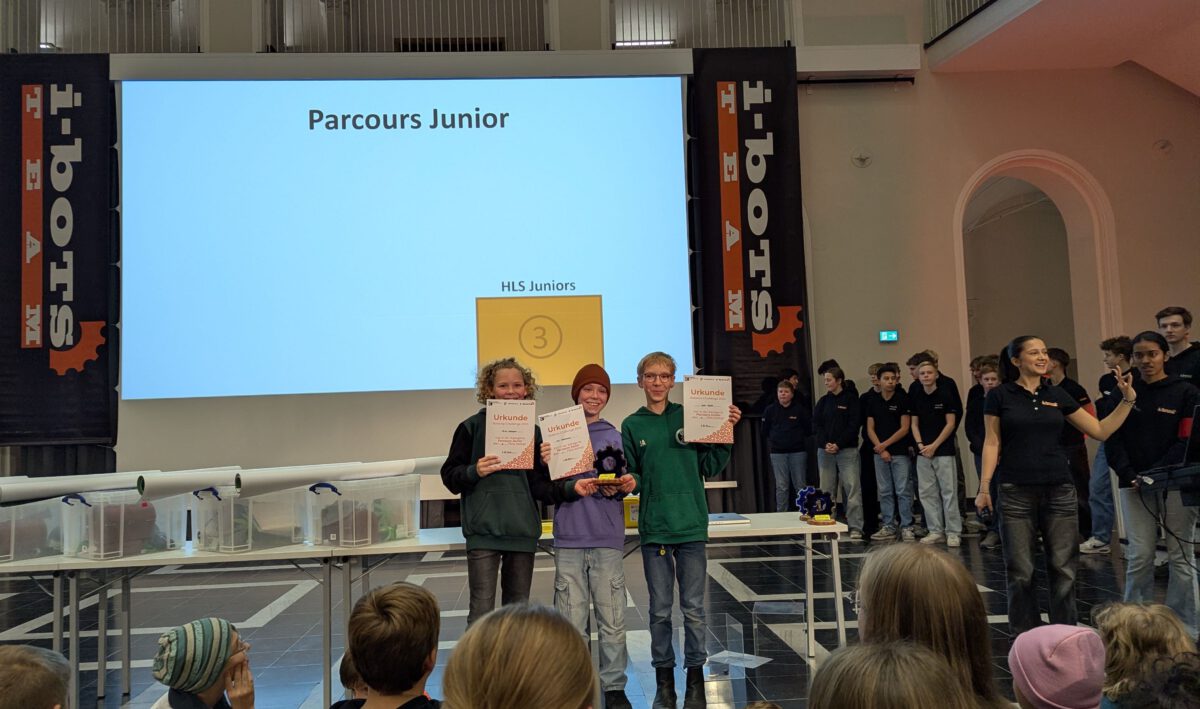 Bei einer Rekordzahl von über 250 Kindern, die dieses Jahr an der Challenge teilgenommen haben, hat sich der Lichthof dabei für einen Tag in eine echte Roboterwerkstatt verwandelt. Auch dieses Jahr war der lange Tag von einem Erfolg für unsere Schule gekrönt: Unsere Junioren konnten sich in einem Startfeld bestehend aus 29 Teams in dieser Wettkampfklasse den dritten Platz erstreiten und dadurch eine der bekehrten Trophäen mit zurück zur Schule bringen.