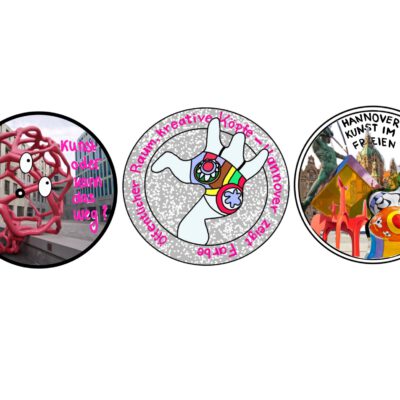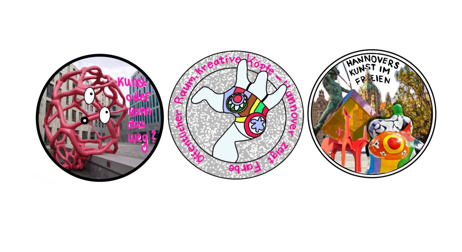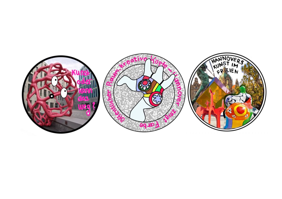 Zum Abschluss des Seminarfachs haben die Schülerinnen und Schüler Sticker entworfen, welche auf die Bedeutung der Kunst im öffentlichen Raum Hannovers hinweisen.