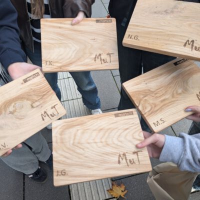 Mit viel Motivation haben die Schülerinnen gesägt, gebohrt, gelötet, geschweißt und programmiert. Nach einem Tag voller neuer Erfahrungen konnten die Schülerinnen ihre selbst gebauten Frühstücksbretter, Schlüsselanhänger und Schüttellampen mit nach Hause nehmen.