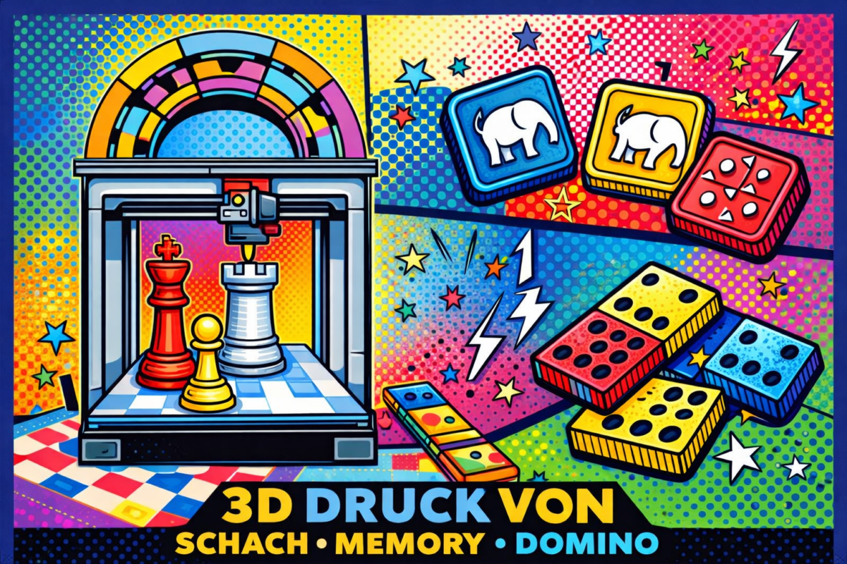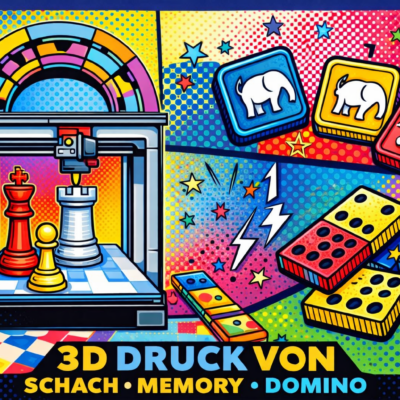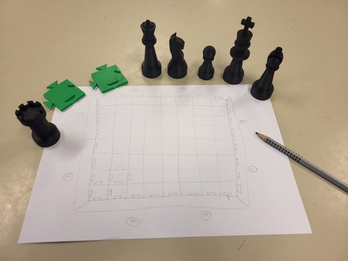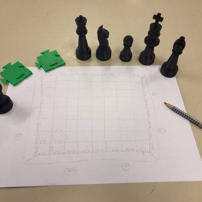 Das Projekt zum Schulgebäude ist zwar momentan auf Eis gelegt, da das Portal eingehüllt ist und so keine Vermessungen für einen Entwurf stattfinden können. Dafür hat man sich nun an die Erschaffung von Spielen gemacht. Schach, Domino und ein HLS-Memory werden gerade detailliert gezeichnet und auch die ersten Probedrucke sind schon fertig. Bald gibt es den ersten Prototypen des kompletten HLS-Schachspiels.