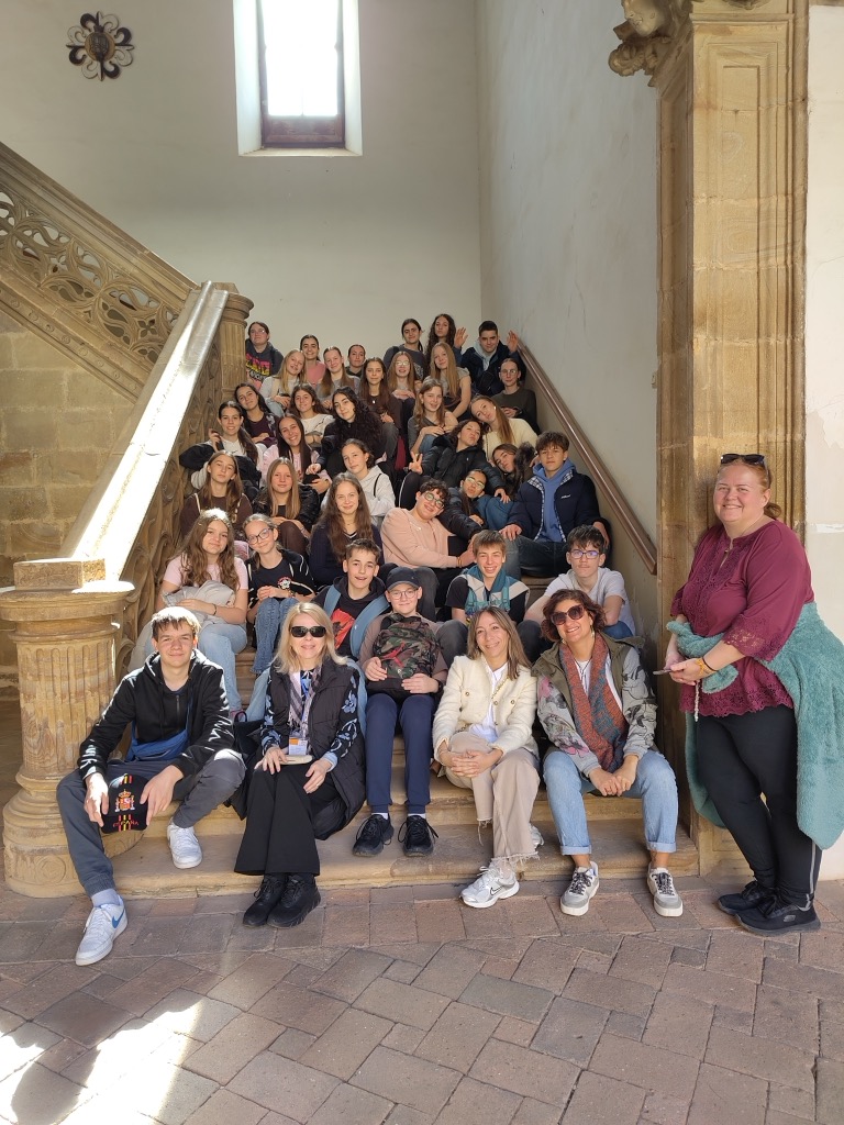 Nach dem frühen Aufstehen und der langen Reise hatten wir es endlich geschafft, wir waren in Almagro angekommen. Dort wurden wir herzlich begrüßt und konnten die Austauschschüler:innen und ihre Familien in Ruhe kennenlernen.Am nächsten Tag wurden wir dann mit dem alltäglichen Schulleben unserer Austauschpartner:innen bekannt gemacht und haben sie in den Unterricht begleitet. Am Abend fand eine kleine Karnevalsfeier in der Schule statt, an der auch slowakische Schüler:innen teilnahmen, die zur selben Zeit einen Austausch mit der spanischen Schule hatten. Wir hatten besonders beim Verkleiden und beim Erlernen typisch spanischer Tänze eine Menge Spaß.