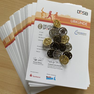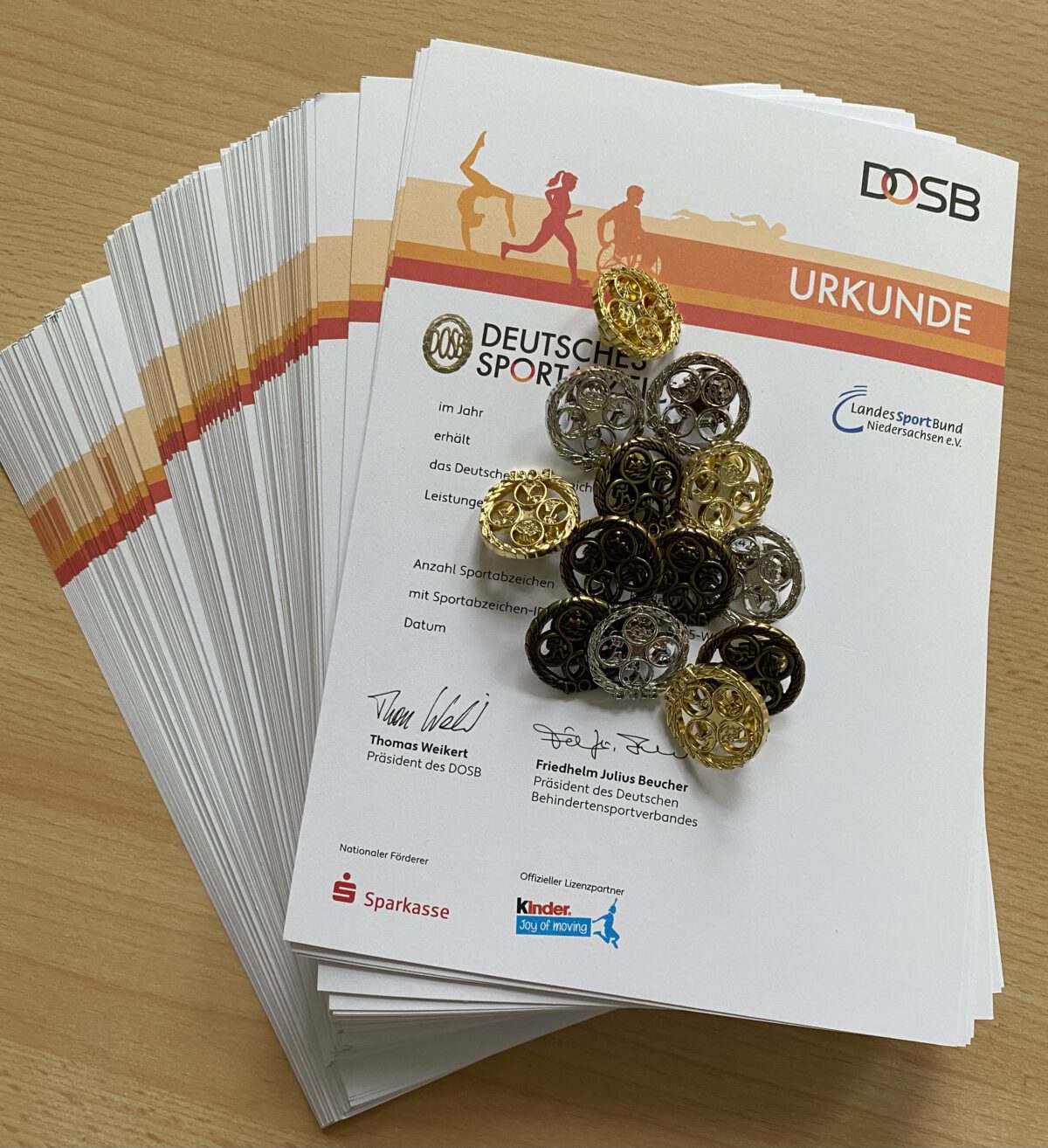 Erfolgreich haben über 160 Schülerinnen und Schüler der Jahrgänge 5-7 das deutsche Sportabzeichen in Bronze, Silber und Gold abgelegt.