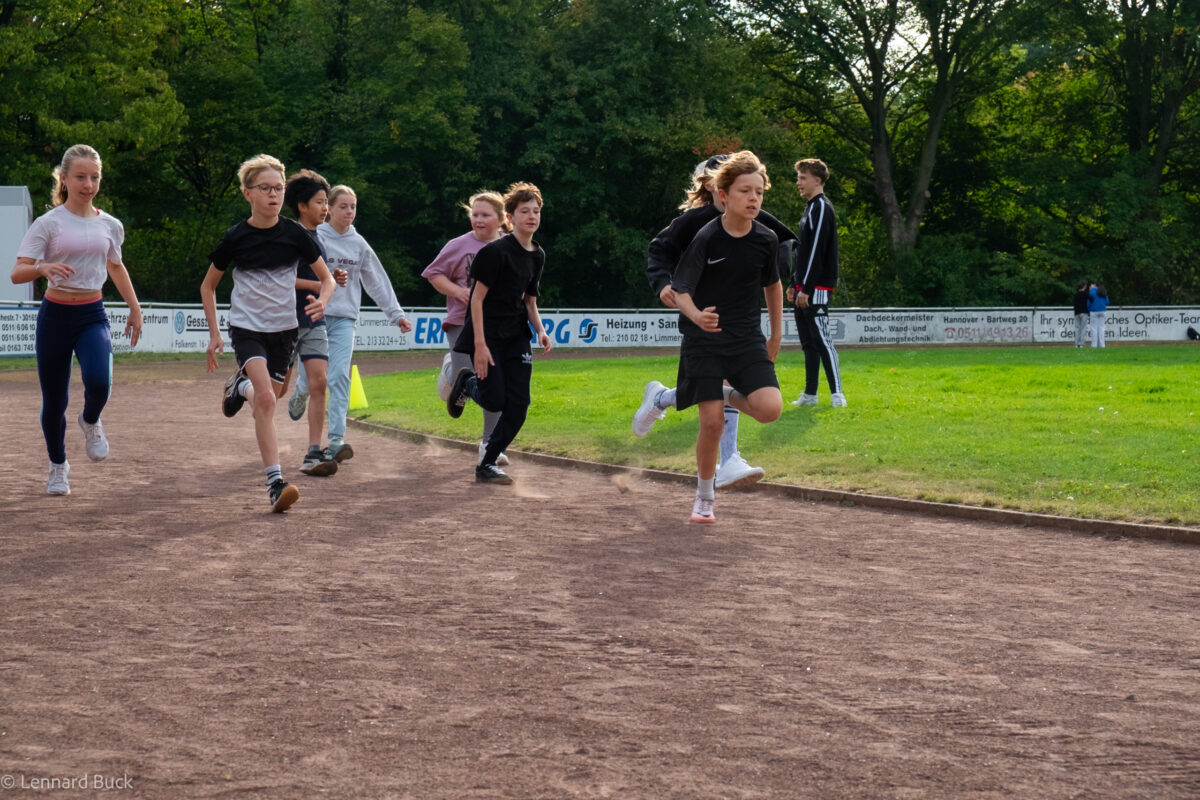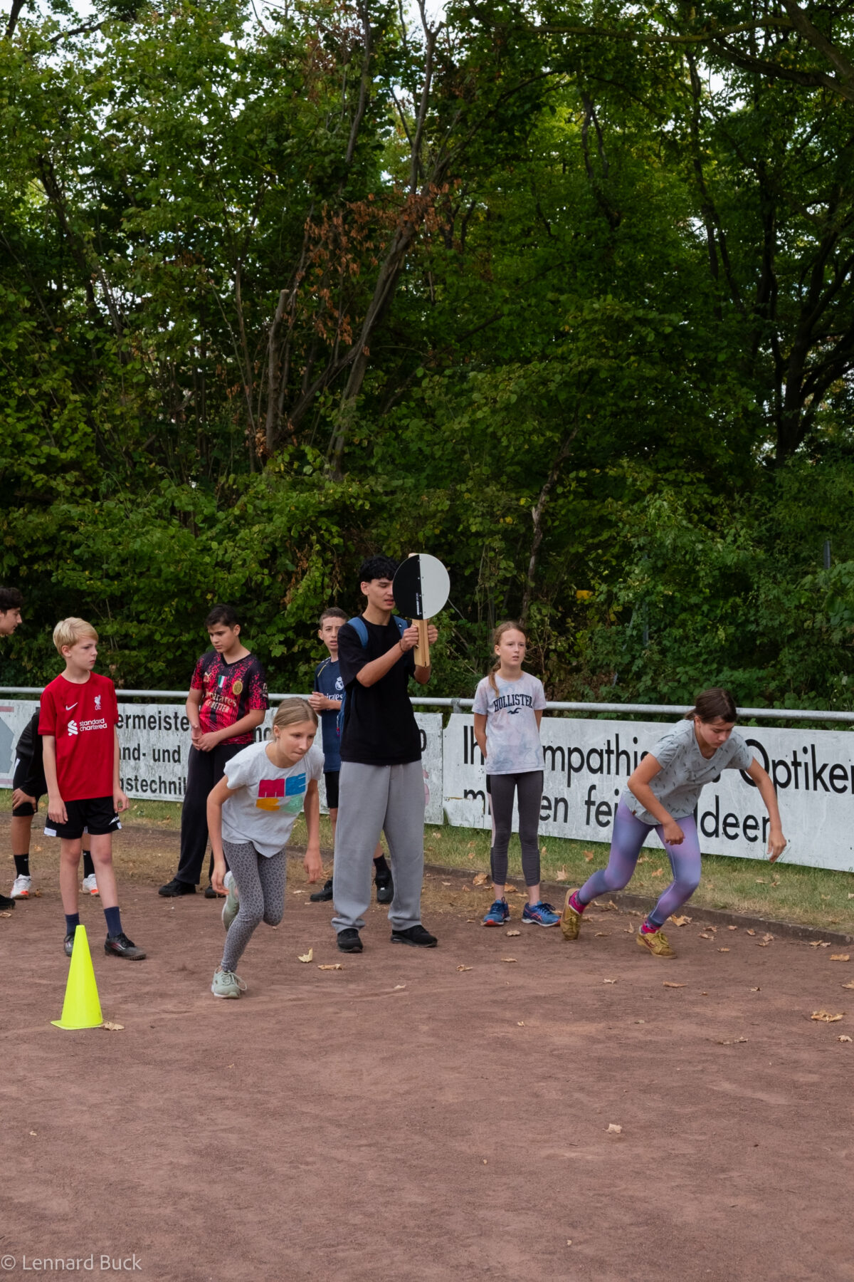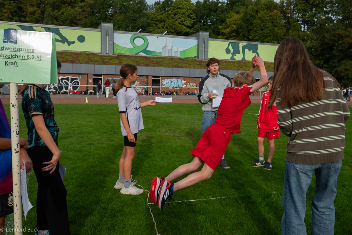 Am 09. September war es wieder soweit, alle Klassen des 5. bis 7. Jahrgangs machten sich auf den Weg zur Anlage des SV Linden 07. Dort fand das Sportfest bei bestem Wetter statt. Nach einem gemeinsamen Warm-Up hieß es für die Schülerinnen und Schüler nicht nur laufen, springen, werfen. An den Stationen Kugelstoßen, Drehwurf, Radschlag, Seilspringen mussten sie ihre koordinativen und turnerischen Fähigkeiten unter Beweis stellen.