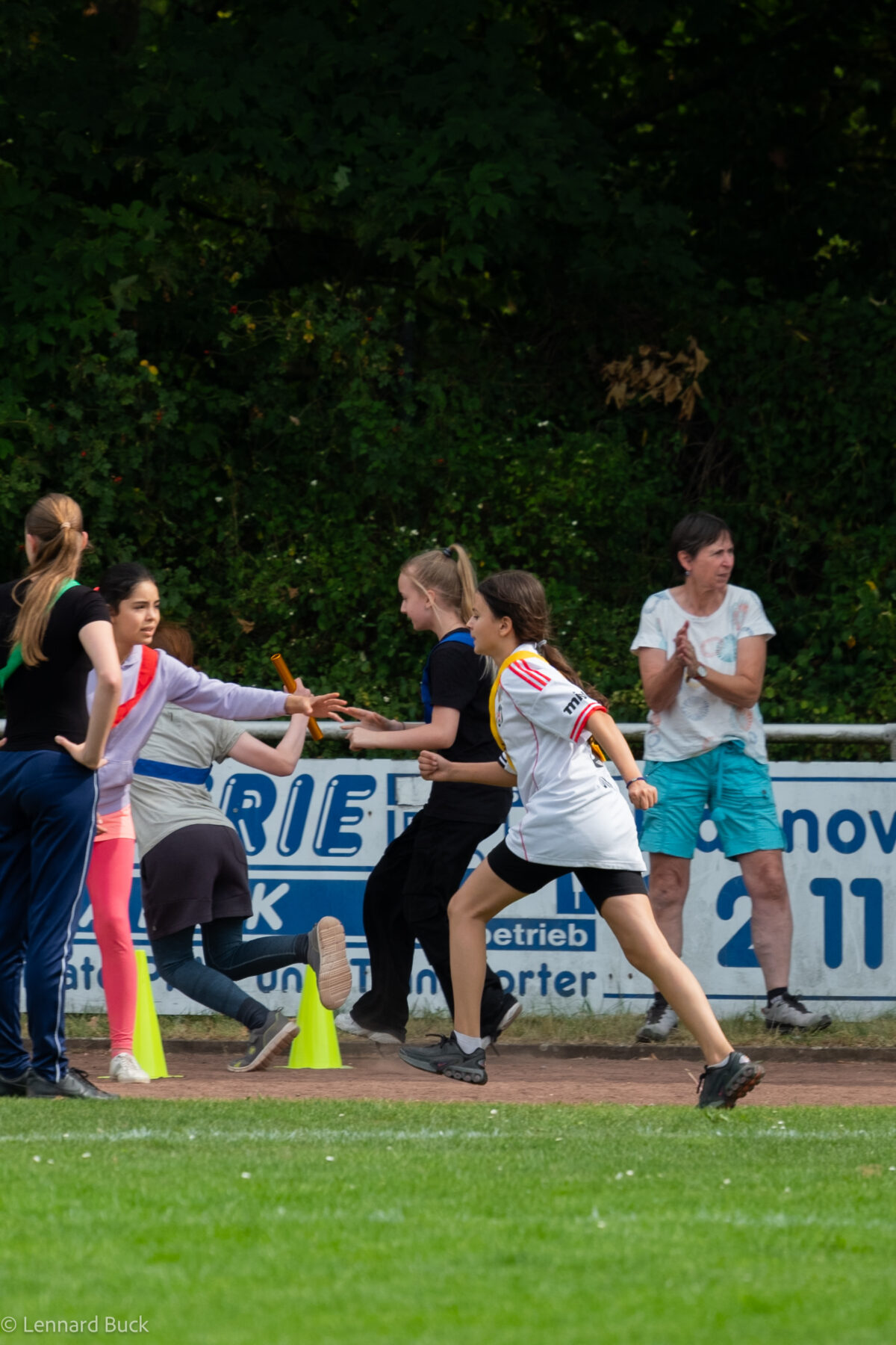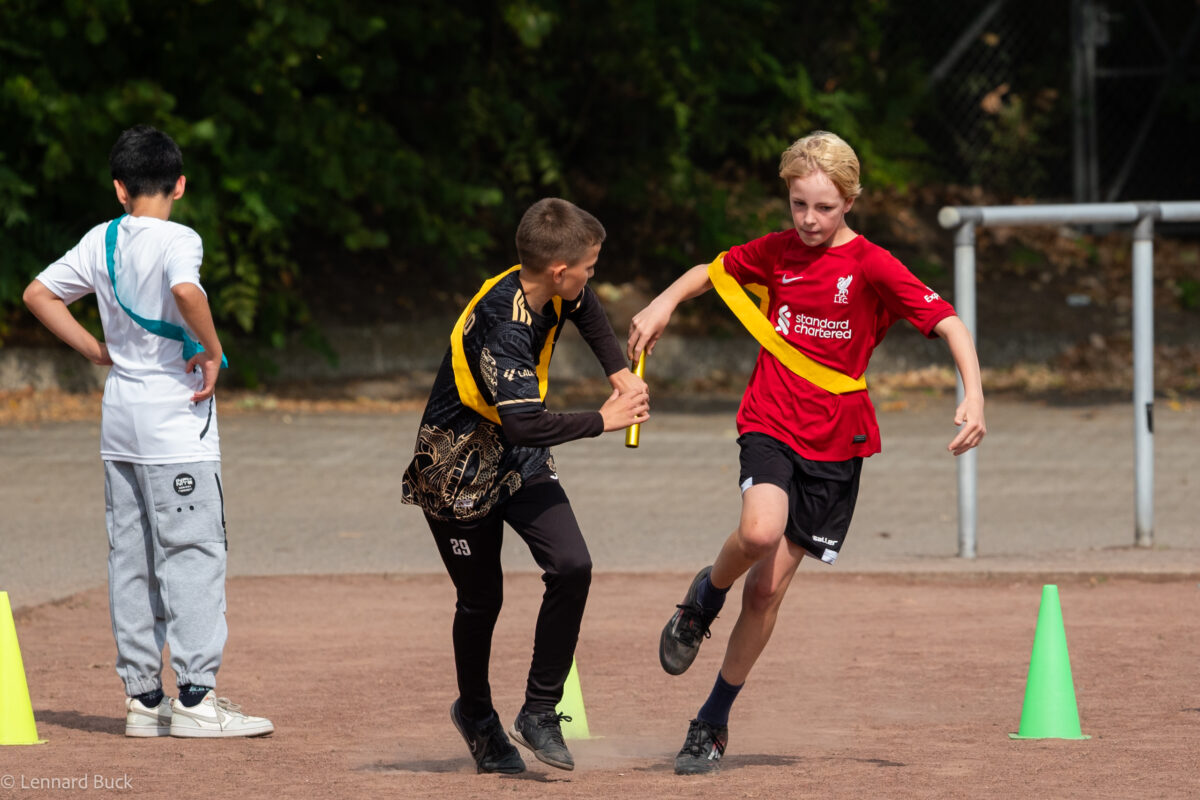 Durch die verschiedenen Stationen war für alle etwas dabei, um das Deutsche Sportabzeichen zu erhalten. Dieses wurde in allen Rängen (Bronze, Silber und Gold) von vielen Schüler*innen erreicht. Die Veranstaltung endete mit den beiden Staffelläufen der Jahrgänge und der anschließenden Siegerehrung unter tosenden Applaus.