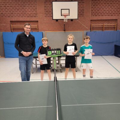 In der Spielklasse 5–7 setzte sich souverän Konstantin Kindlein (05C) durch, der keinen Satz im Verlauf des gesamten Turniers verlor und erstmals den Schulmeistertitel gewann – und das, obwohl er keinem Tischtennisverein angehört. Dass er aber ein besonderes Talent für den Tischtennissport besitzt, zeigte sich bereits 2024, als er der Bundessieger der Mini-Meisterschaften wurde. Platz zwei belegte wie im Vorjahr Cheng Shen Lin (07A), Platz drei gingen an Jari Petermann (06B) und Benjamin von Niswandt (05B).